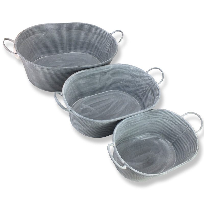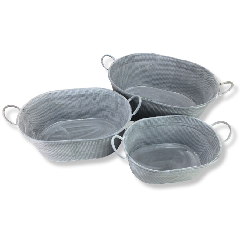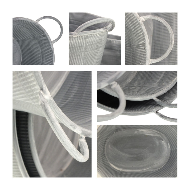 Ez a rusztikus hatású, ovális fém tartó igazán sokoldalú három darabos szett. Használhatod virágtartóként, jégtartóként egy nyári partin, karácsonyi dekoráció alapjaként vagy ünnepi rendezvények díszeként is. Strapabíró, mégis mutatós kiegészítő, amely bármilyen alkalomhoz stílusosan illeszkedik.