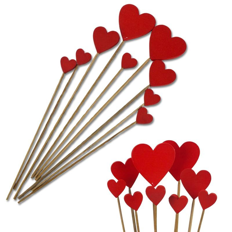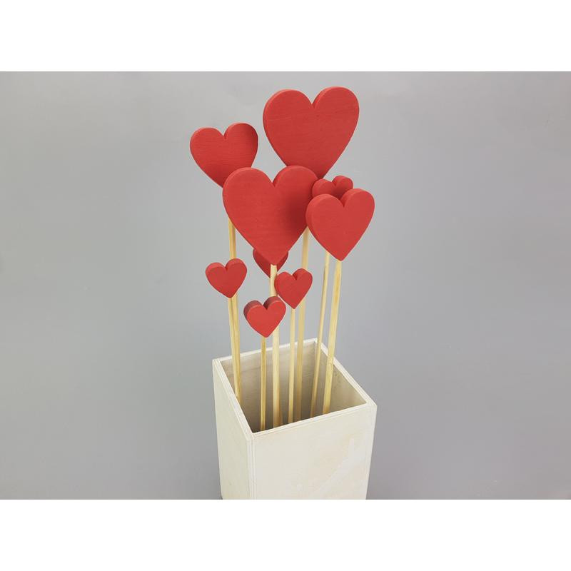 Piros fa szívek beszúrható vegyes 9db/csomag