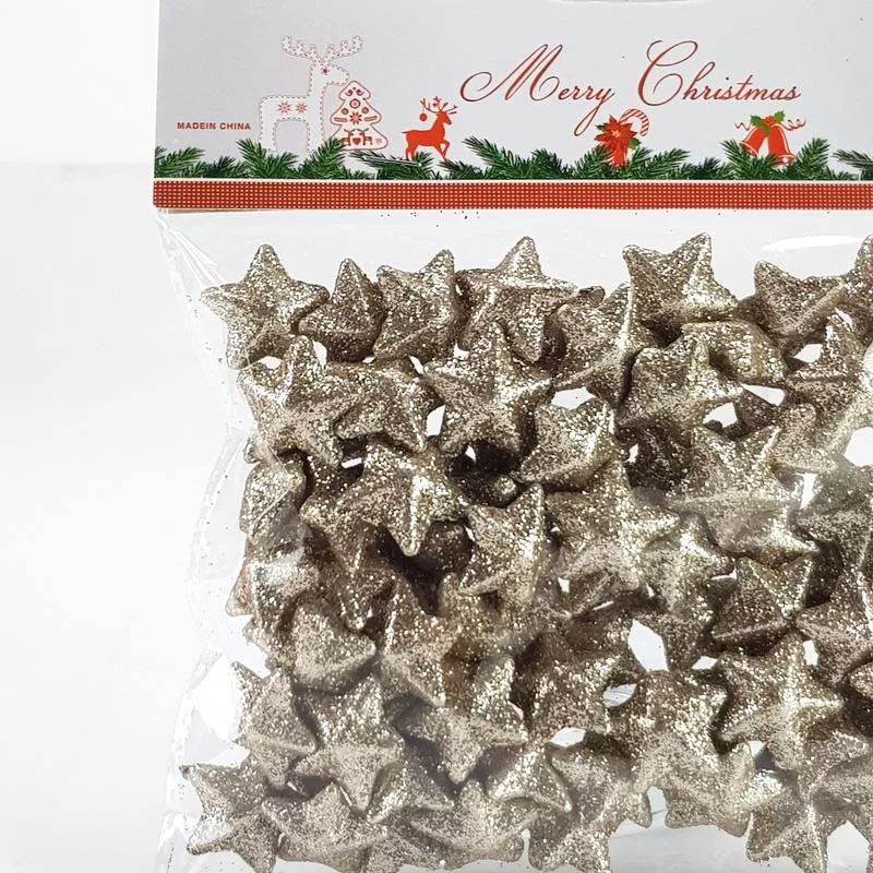 Kisebb méretű csillámos polisztirol csillagok, fali, asztali dekorációk megalkotásához. Egyedi készítmények elkészítéséhez is ajánlott dekorációs kiegészítő.