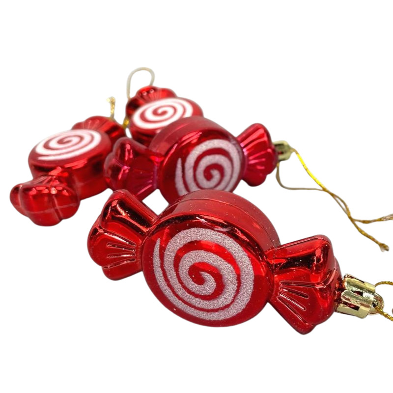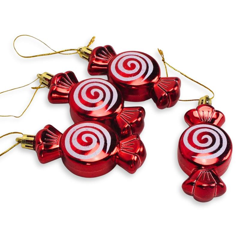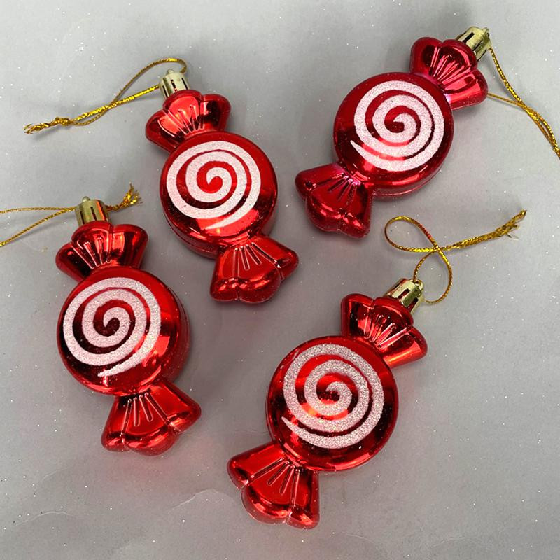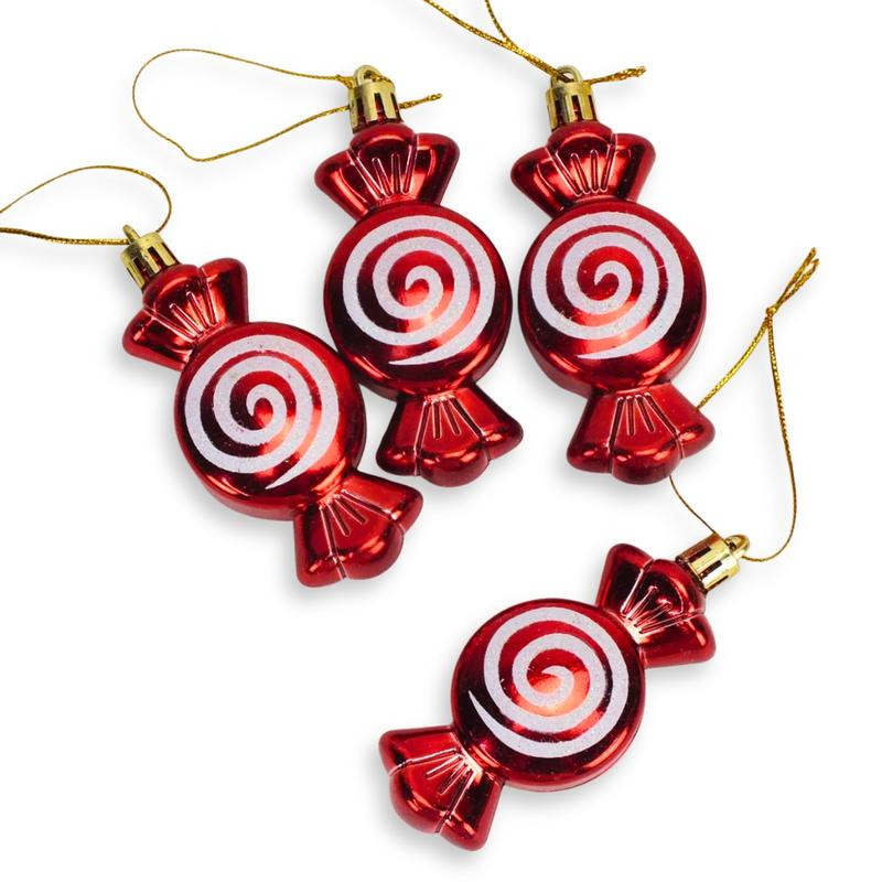 Csillámos karácsonyfadísz dekoráció:  4db szaloncukor dísz, akasztóval ellátva.