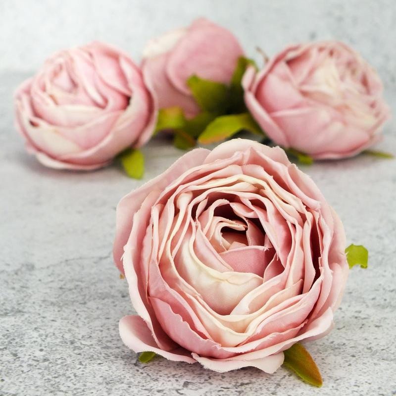 Százlevelű rózsa fej - pasztell cirmos rózsaszín 4db/csomag