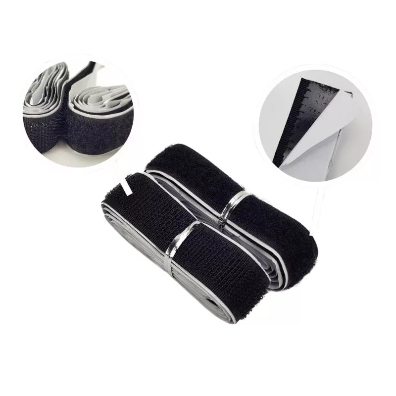 Masszív tépőzáras csíkok, fehér színben. Egy hurkos oldalú és egy horgos oldalú csík. Mindegyiknek a hátulja erős ragasztós felülettel ellátott.
