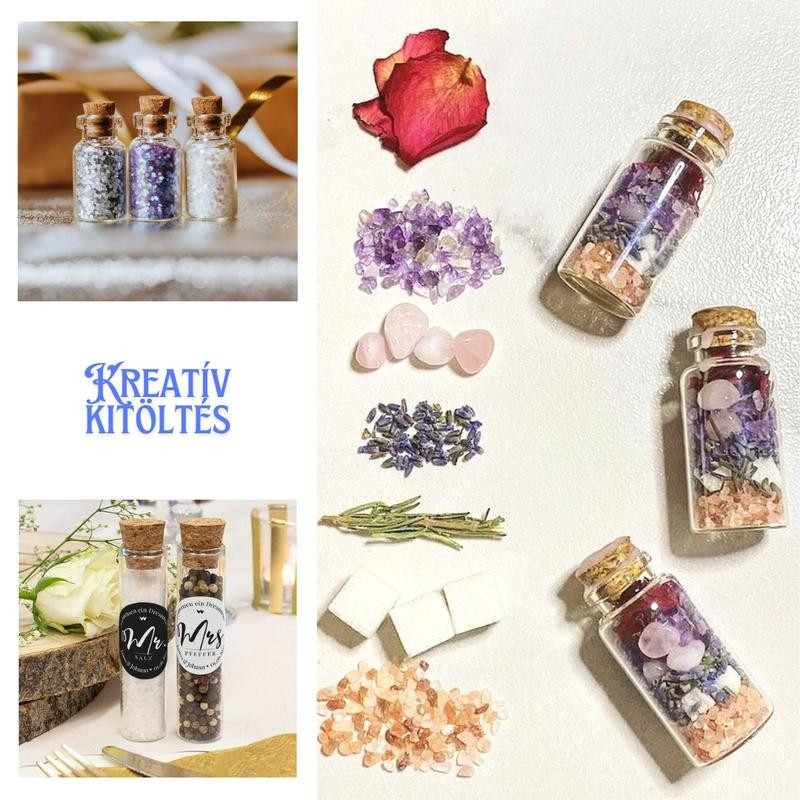 Üvegcséink kiválóan alkalmasak arra, hogy egy kis varázslattal otthonodba hozd az ünnepi hangulatot, de csak a képzeleted szab határt, amikor arról van szó, hogy miként használod őket. A parafadugó segítségével könnyedén zárhatók, így a tartalom biztonságban marad. Töltsd meg apró ajándékokkal és használd őket vendégajándékokként. Hagyj szabadon fantáziádnak szárnyalni, és teremts egyedi dekorációkat ezekkel az aranyos üvegcsékkel.