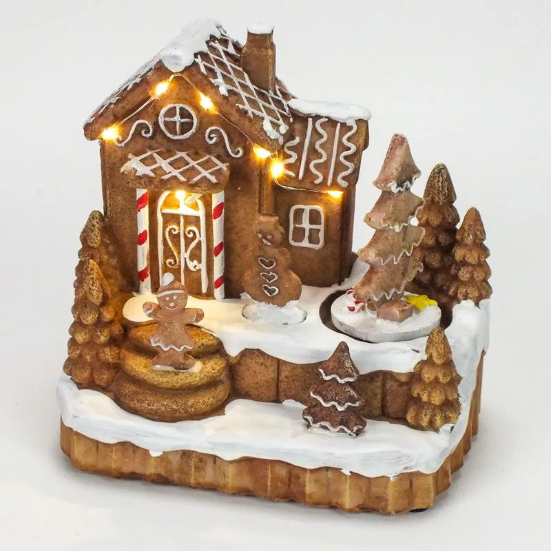 Világítós mézeskalács falu forgós fenyővel