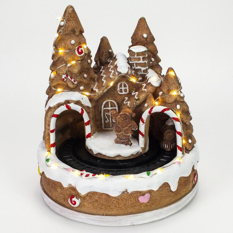 Világítós mézeskalács ház, vonattal