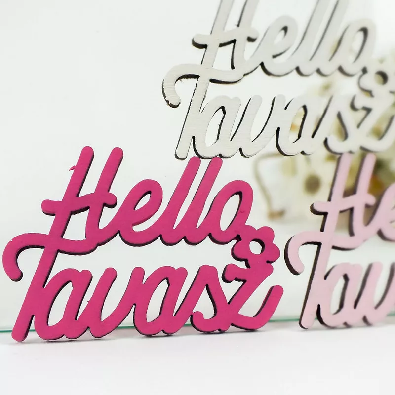 Díszítsd szezonális dekorációidat "Hello tavasz" felirattal és dekorálj vele falidíszeket, ajtókopogtatókat, asztalidíszeket, vagy egyéb egyedi készítményeket.