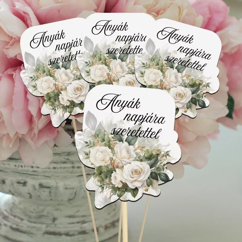 Nyomtatott dekorkarton - Anyák napjára .. virágos tábla - fehér 4db/csomag