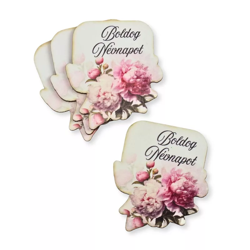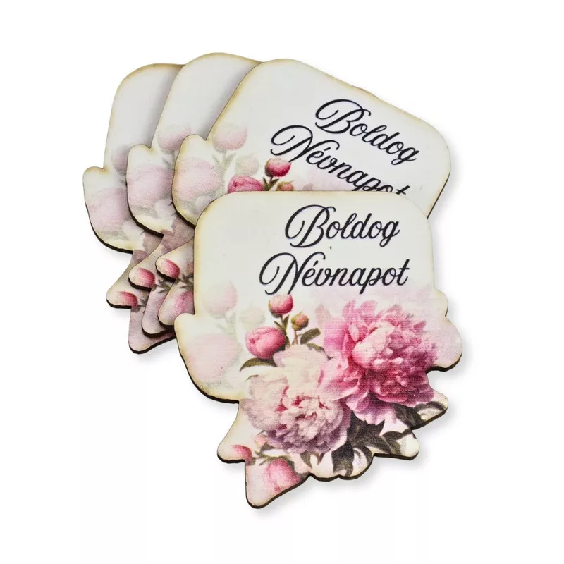 Nyomtatott dekorkarton - Boldog névnapot virágos tábla - rózsaszín 4db/csomag