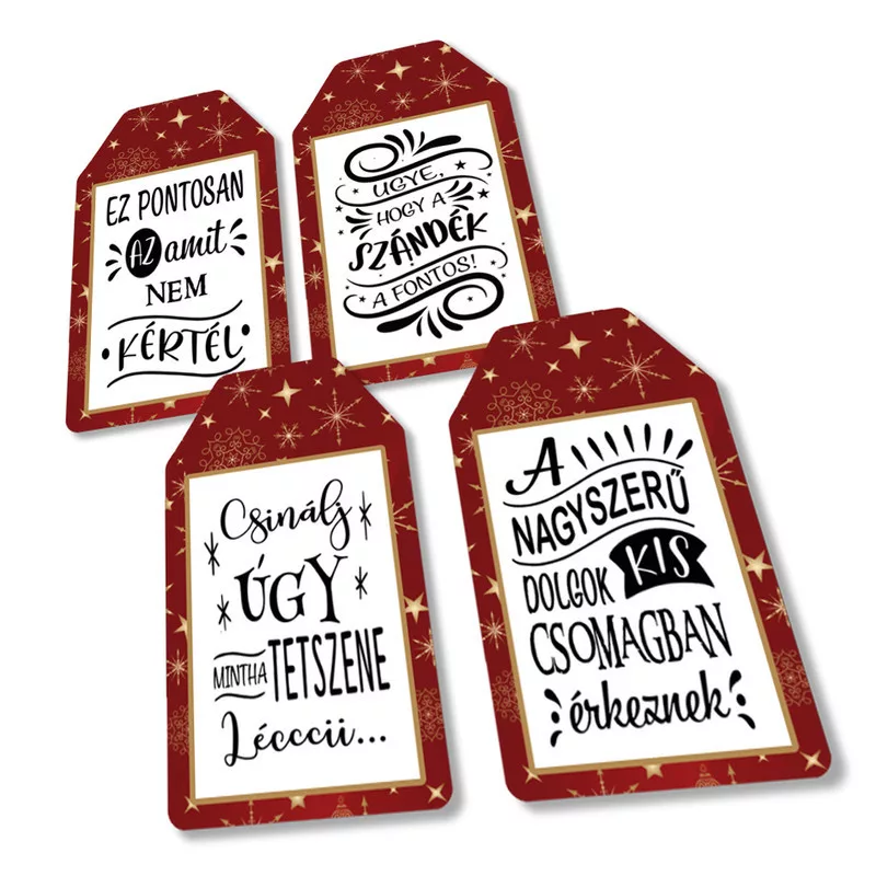 Nyomtatott dekorkarton - Ajándék kísérő táblák humoros 4db/csomag