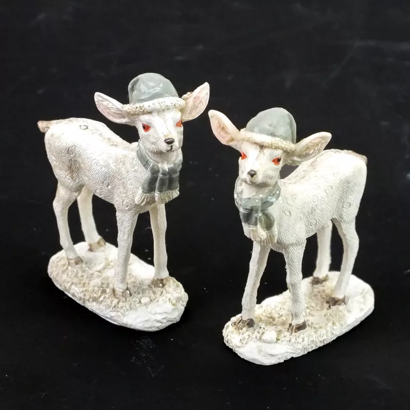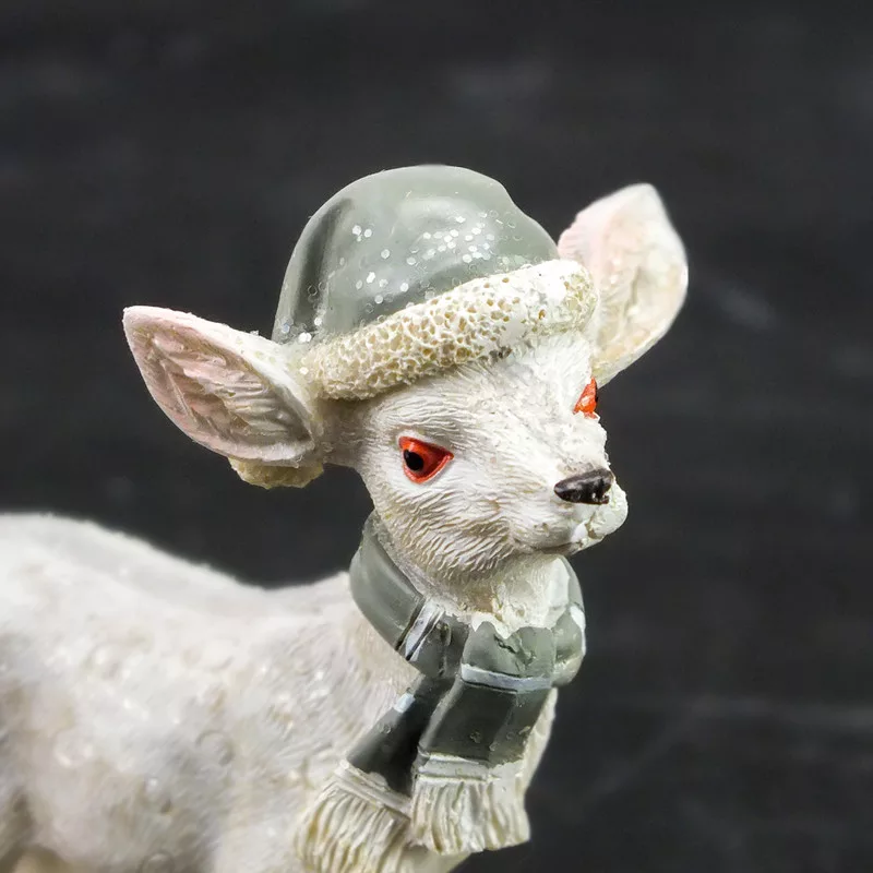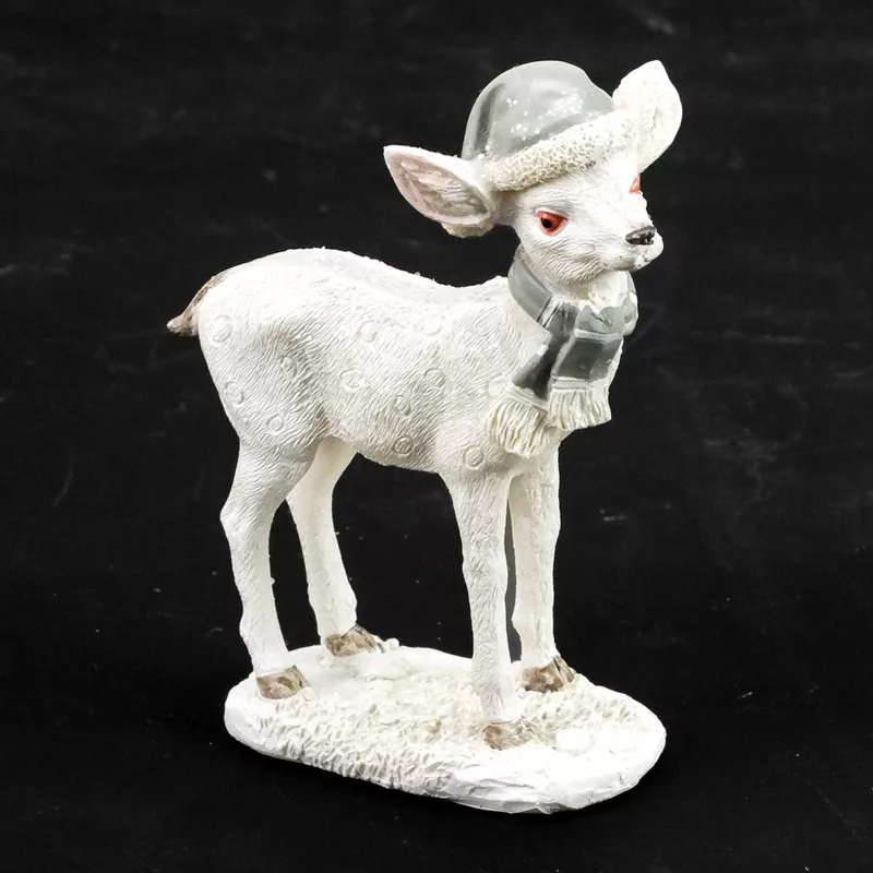 Kerámia glitteres álló fehér őzike sapkában 2 féle