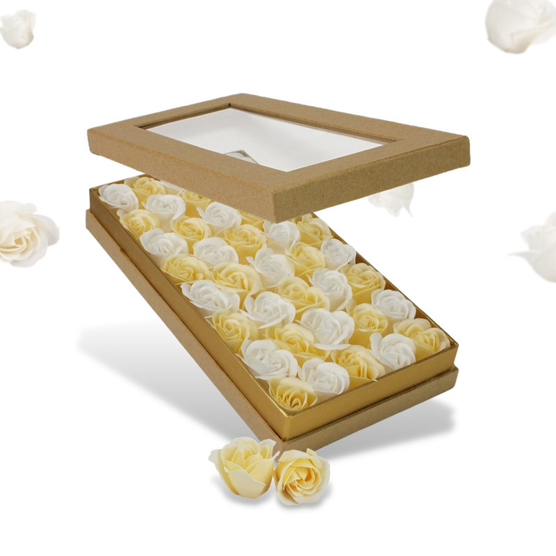 Párunknak, családtagoknak szóló ajándék doboz, anyák napjára vagy születésnapra de nem kell, hogy ünnep legyen, mert az év bármely napján kedveskedhetünk vele. Natúr színű, átlátszó tetejű prémium doboz, 20-20 darab krém-fehér színű, illatos szappanrózsával.