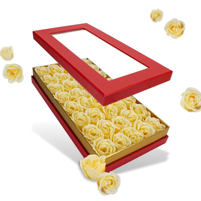 Párunknak, családtagoknak szóló ajándék doboz, anyák napjára vagy születésnapra de nem kell, hogy ünnep legyen, mert az év bármely napján kedveskedhetünk vele. Átlátszó tetejű prémium doboz, 40 darab illatos szappanrózsával.